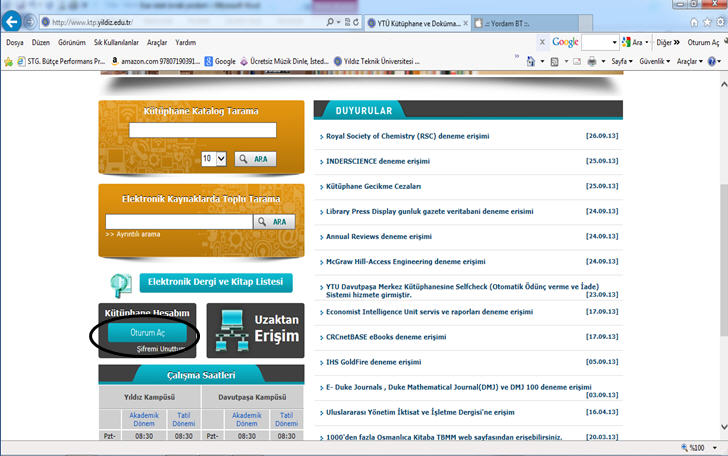 Kütüphane web sayfamızda bulunan Kütüphane hesabım - “Oturum Aç” sekmesi tıklanarak Üye kodu ve şifre bilgisi girilir.