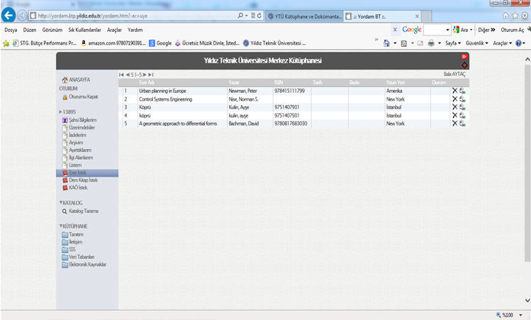 ESER İSTEK LİSTENİZİN TAKİBİ